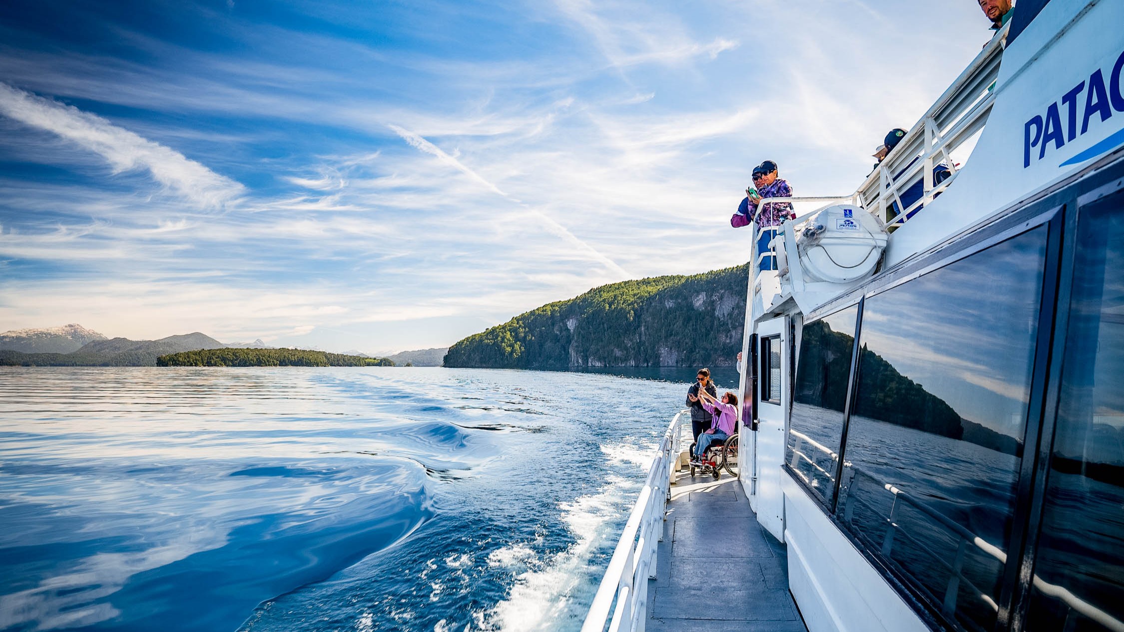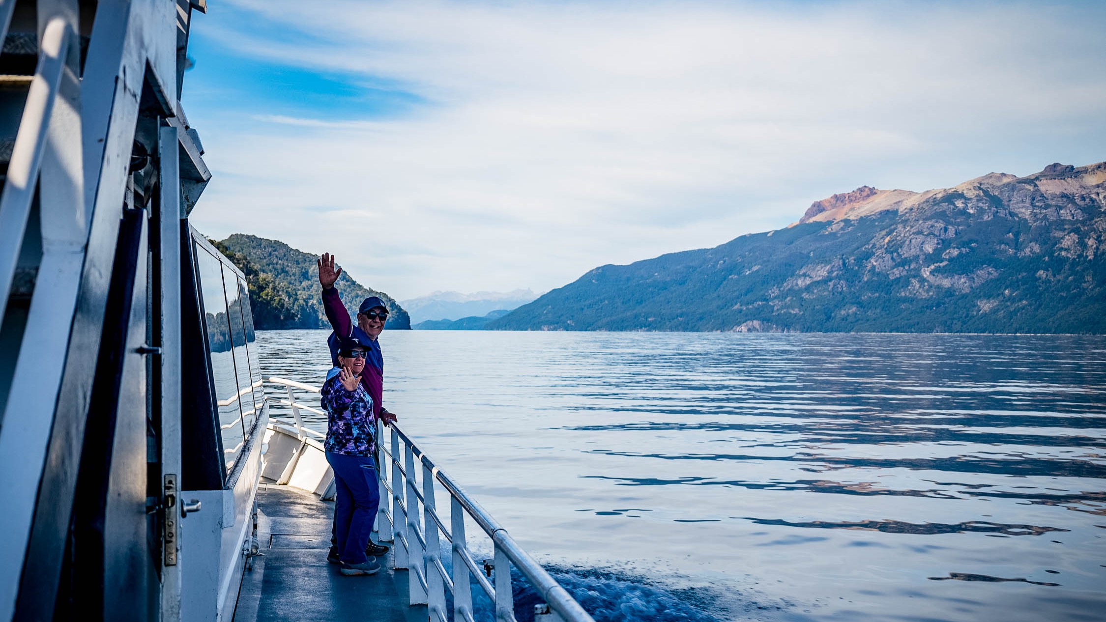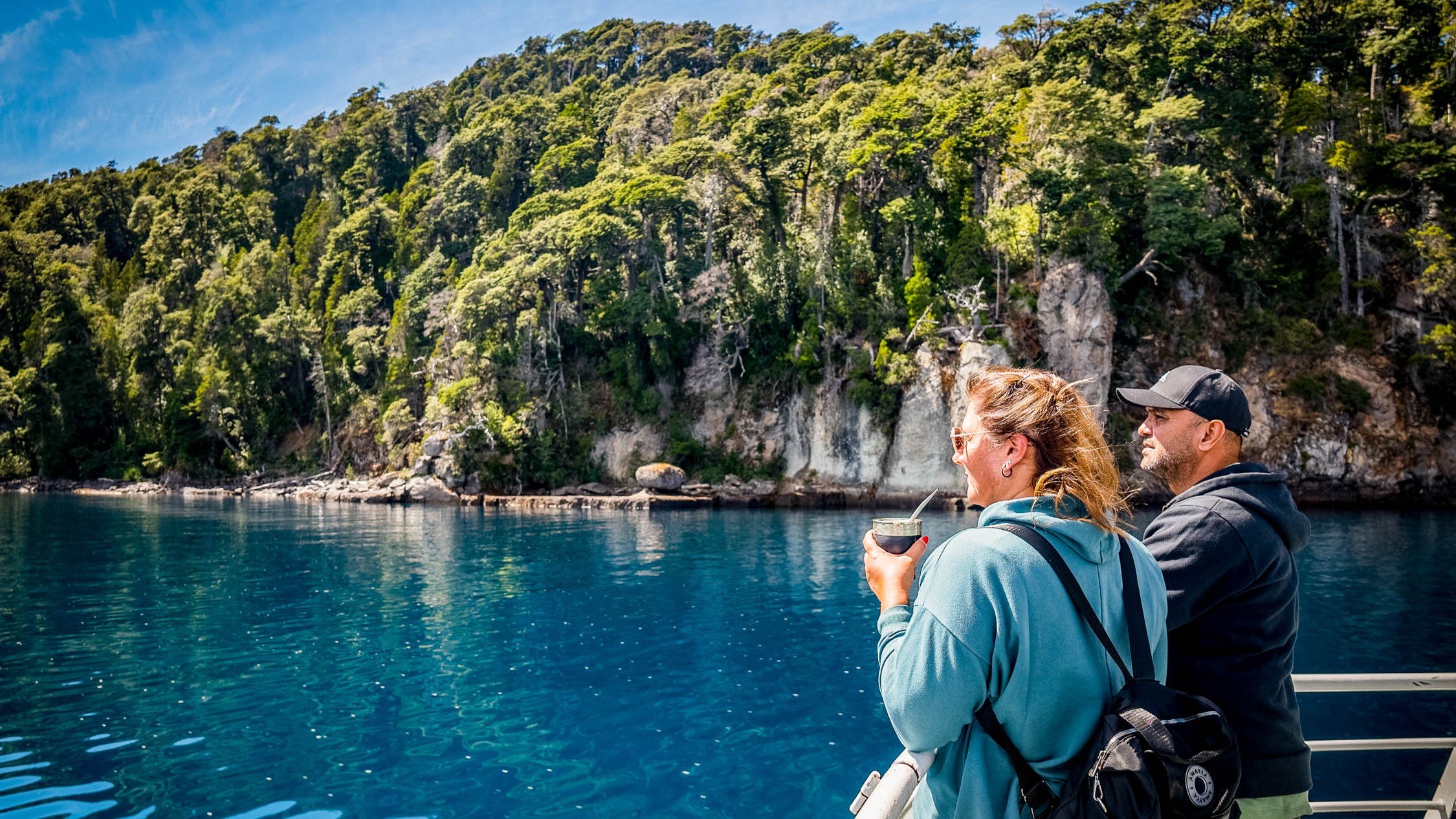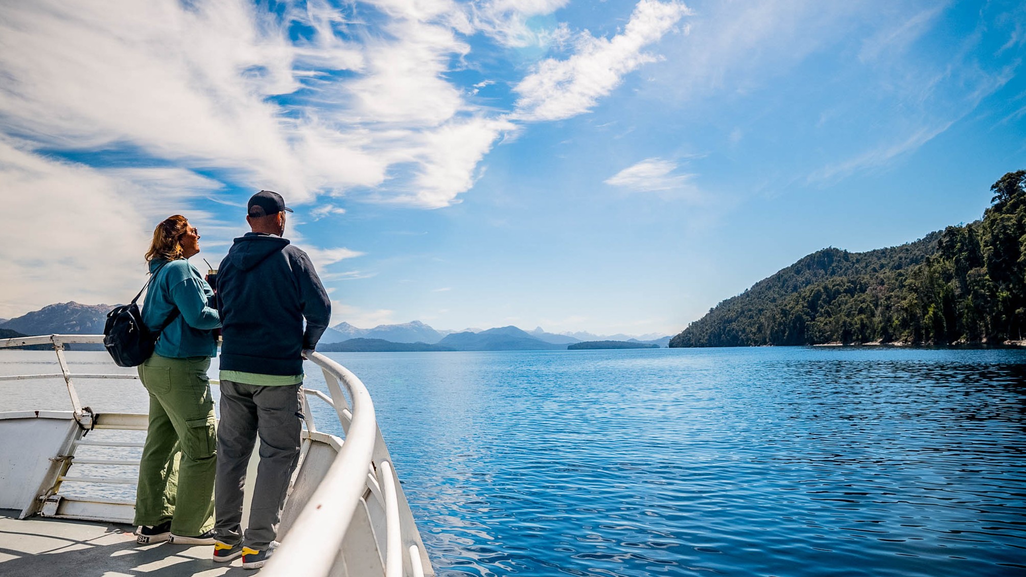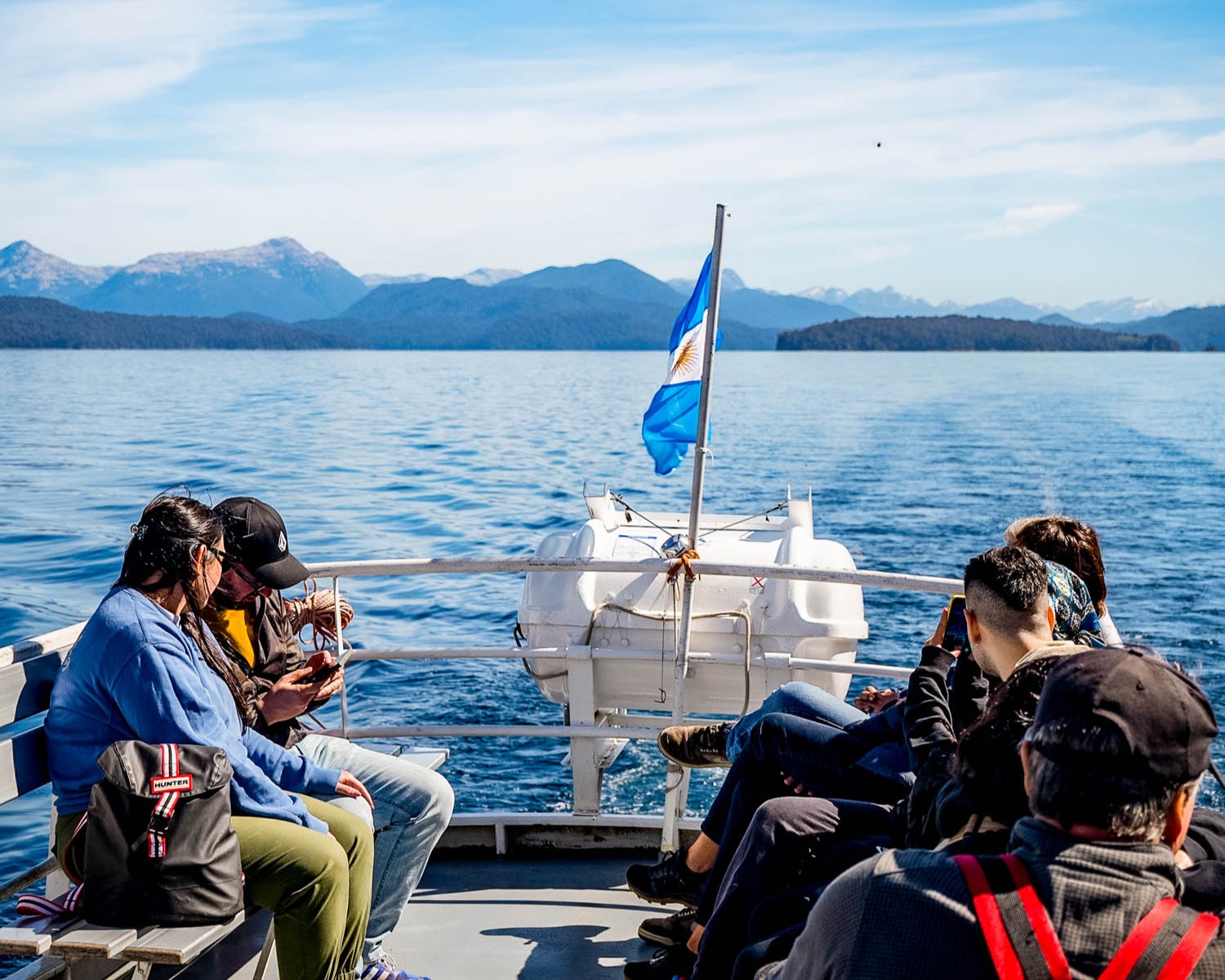 El paseo comienza con el traslado desde los hoteles hacia la zona de puertos, donde se realiza el embarque para navegar por el Lago Nahuel Huapi. Durante la navegación, de aproximadamente una hora, se disfrutan las vistas del lago y del entorno natural del Parque Nacional Nahuel Huapi, mientras los guías comparten información sobre el paisaje y la región.